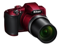 Appareil photo bridge nikon coolpix b500 rouge boitier de type bridge a piles aa capteur cmos 16 megapixels ecran acl 75 cm orientable zoom optique 40x ultra grand angle 225 mm partage facile grace au wifi nfc.
